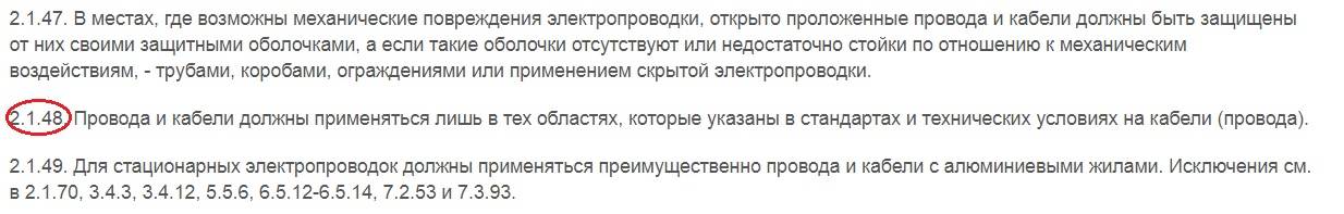 Des formulations similaires vous font parcourir les règles. Après avoir fait défiler le PUE, vous trouverez un point «intéressant» qui limite le champ d'application des câbles et fils (capture d'écran ci-jointe).
