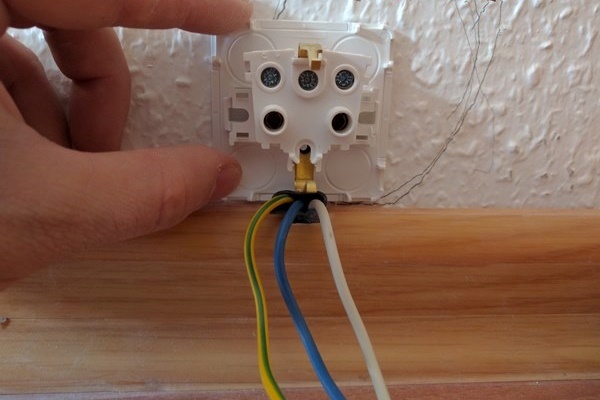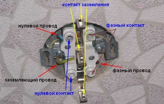 Le fil de protection est connecté à des contacts supplémentaires situés séparément des contacts d'alimentation. Les fils zéro et phase mènent aux contacts de puissance. La séquence de leur installation ne joue pas un rôle significatif.