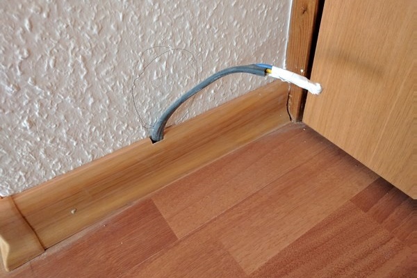 Pour commencer, nous analyserons le processus de connexion d'une prise aérienne à un câble caché dans la plinthe.