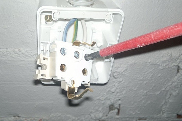 - Après avoir retiré la prise de la prise, autant que les fils le permettent, dévissez les vis de serrage qui fixent les câbles d'alimentation. Dans le bloc, les conducteurs conducteurs sont déconnectés séquentiellement.