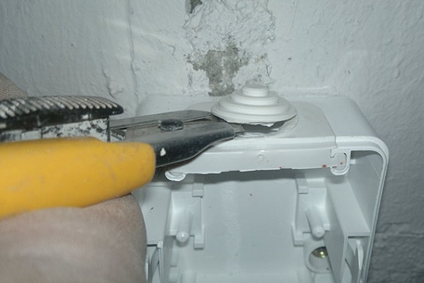 Si, lors du démontage de la prise pour câblage dissimulé, il n'est pas possible de dévisser la vis de fixation du couvercle, vous pouvez prendre des mesures extrêmes - utilisez un coup de marteau précis, mais pas très fort pour le casser. La prise elle-même doit être retirée très soigneusement afin de ne pas endommager les câbles qui y conduisent.