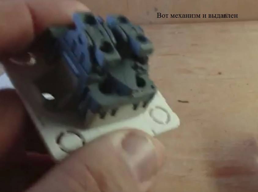 Étape 4. Il est nécessaire de retirer les loquets de fixation ou de dévisser les boulons qui maintiennent le mécanisme de l'interrupteur dans la prise.Vous pouvez maintenant effectuer une inspection et une réparation plus détaillées de l'appareil.