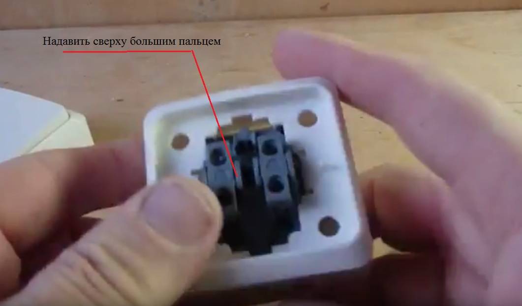 Il est monté sur des éléments semi-circulaires tels que «père-mère» ou des fentes spéciales. Il est nécessaire de tenir le boîtier de l'interrupteur d'une main, et de l'autre, doucement, mais avec effort, tirez la poignée vers vous. Vous n'avez pas besoin de le tordre.
