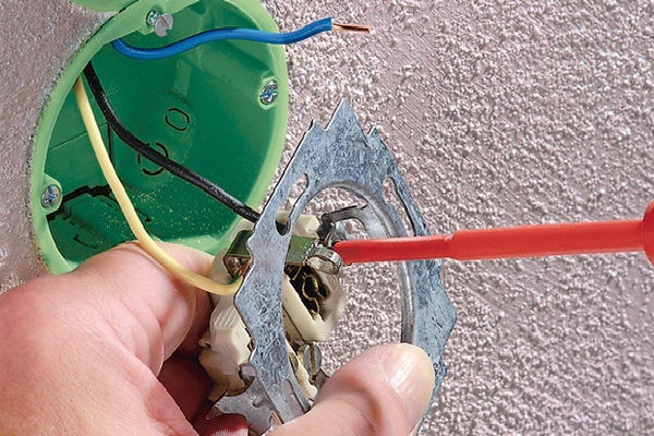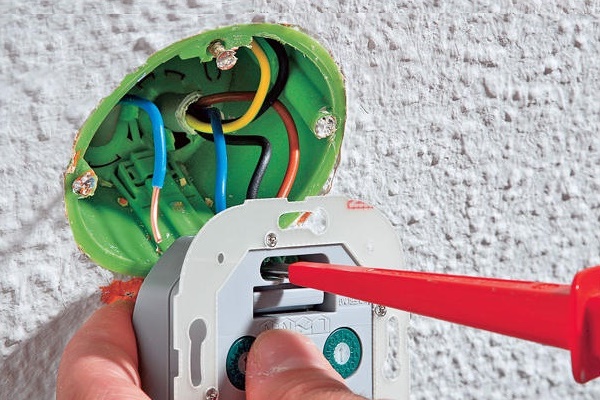 Tout d'abord, nous devons nous assurer que les fils sont correctement connectés, pour lesquels nous les testons avec un tournevis-multimètre ou un autre appareil. Après avoir découvert que tout est assemblé correctement, nous prenons le mécanisme de commutation et l'installons en place.