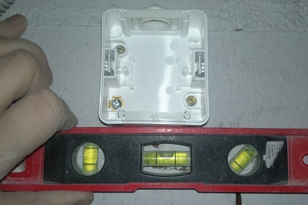 Nous mettons le boîtier de l'interrupteur en place et le fixons avec les clous à cheville. Nous effectuons le travail avec soin afin de ne pas endommager la pièce en plastique. Le boîtier doit être bien fixé sur la base afin qu'il n'y ait pas de mou et de mobilité. Nous prenons le niveau et contrôlons à nouveau la position de la pièce. Si un biais est détecté, nous le corrigeons en retirant le boîtier et en faisant un nouveau trou.