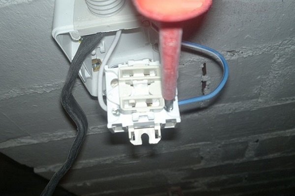 Si vous ne savez pas laquelle des machines est «responsable» du groupe de commutateurs souhaité, le plus simple est de les désactiver. Ensuite, vous devez vous assurer qu'il n'y a pas de tension sur le fil de travail, ce qui peut être fait avec un tournevis indicateur.