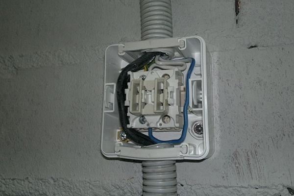 Mais le plus souvent, le fil est posé de manière ouverte: dans le canal de câble, tuyau ondulé ou juste au-dessus du mur. Indépendamment de cela, la procédure de connexion est effectuée à peu près la même. Nous considérons en détail toutes les étapes de ce processus.