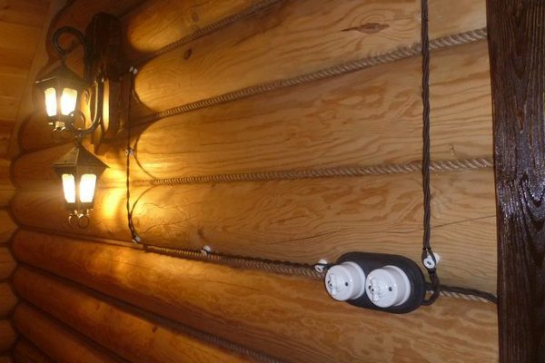 Le système éclairage de maison en bois différents types de câblage. La méthode cachée n'est pas utilisée, car elle présente un risque d'incendie extrême et nécessite une isolation maximale des câbles.