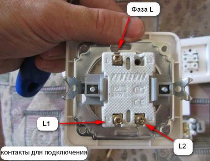 Il n'y a aucune difficulté dans l'installation ou dans la connexion des deux claviers. Il est installé dans la prise ou directement dans le mur, fixé avec des pattes ou une connexion à vis. La façon dont les fils sont connectés est indiquée sur la photo.