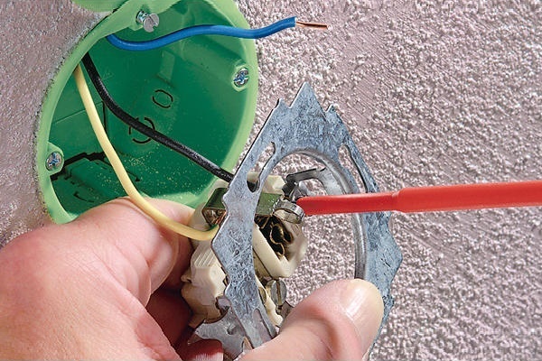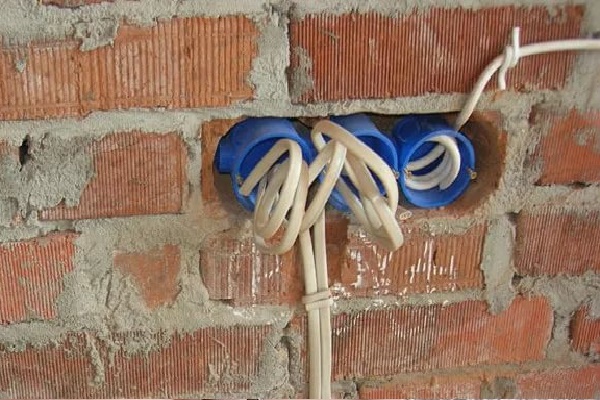 S'il est nécessaire d'installer une prise ou un interrupteur dans le mur, qui est censé être carrelé, un marquage et des trous dans le béton sont effectués avant le début des travaux de finition. Des fils électriques sont posés à l'avance dans les logements reçus.