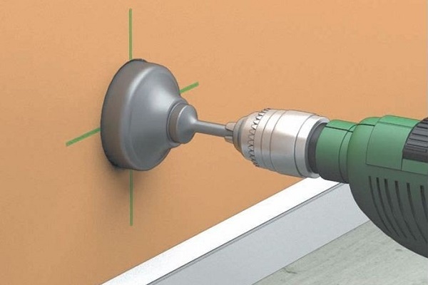 Avant d'installer la douille dans le béton, un marquage est fait, puis un trou est fait dans le mur et un mortier de gypse est préparé.