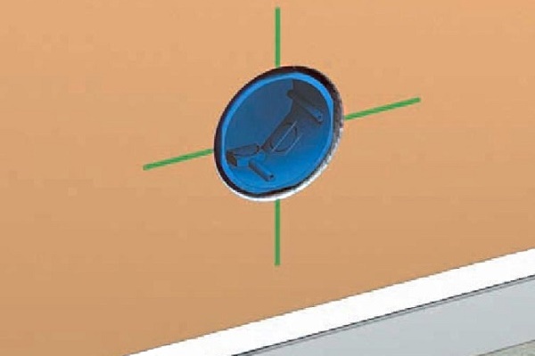 Il est préférable de faire le travail avec une couronne en bois. Une fois le trou préparé, retirez le fil et insérez le boîtier de prise de sorte que les vis soient horizontales. Verrouillez le verre dans les cloisons sèches en tournant les deux vis encastrées dans le sens des aiguilles d'une montre.