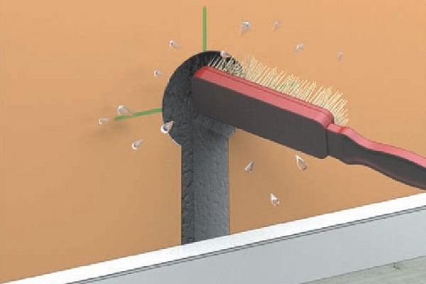 Ensuite, la buse est retirée et la totalité de la couche de béton qui y reste est retirée du trou avec un ciseau et un marteau.