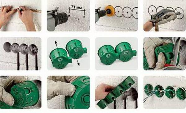 L'ensemble du processus de montage d'un bloc de boîtiers de prises dans des cloisons sèches est décrit en détail dans la vidéo: