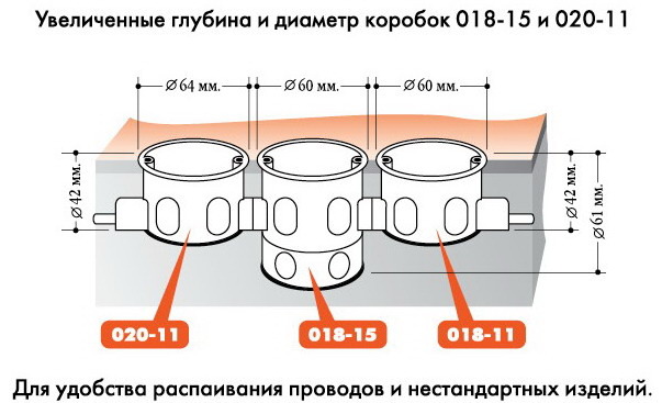 Verres surdimensionnés, dont la profondeur est d'environ 80 mm, il est conseillé de l'appliquer lorsqu'il n'y a pas de boîte de jonction dans le câblage, et la prise elle-même remplit ses fonctions. Quant aux produits carrés, ils ont en règle générale une taille de 70x70 ou 60x60 mm.