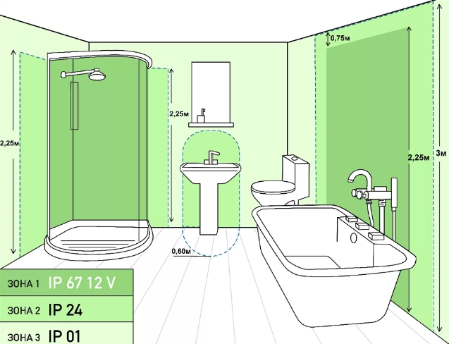 Comme vous le savez, la combinaison d'eau et d'électricité dans la vie quotidienne est très dangereuse pour l'homme. Par conséquent, la salle de bain, où un tel contact est possible, est généralement divisée en zones. Il y en a quatre - de 0 à 3.