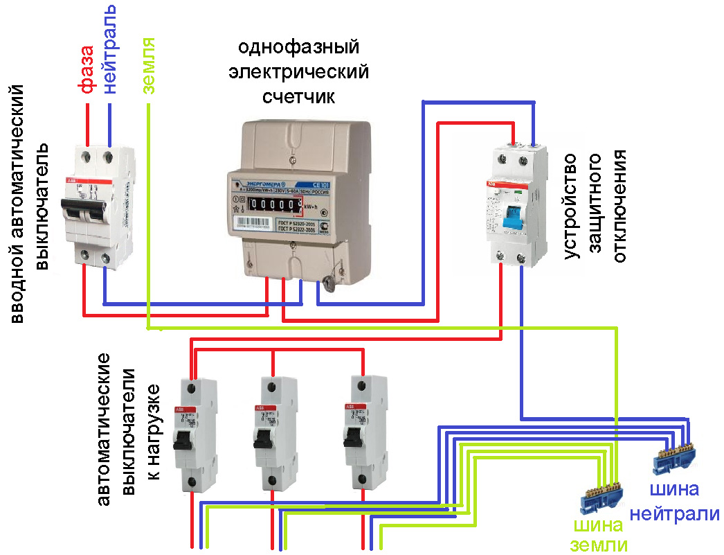 Connexion d'un compteur électrique monophasé et de machines automatiques: schémas standard et règles de connexion