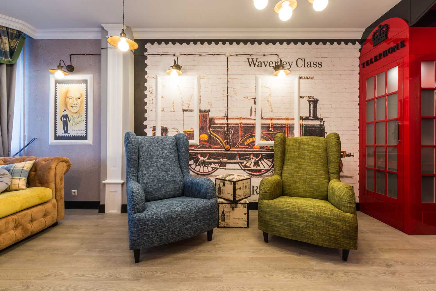 Par ailleurs, un éclairage froid des photographies est fourni. Dans la conception du salon, les flux de lumière de différentes températures de couleur ne se croisent pas.