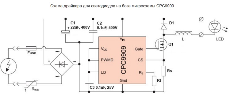 Considérons le principe de fonctionnement des pilotes dimmables basés sur la puce CPC9909 utilisée comme dispositif de régulation pour les circuits LED, y compris ceux à haute luminosité.