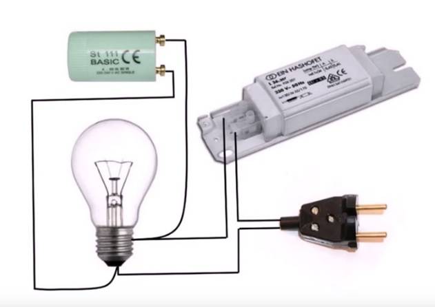 Il s'avère que pour le fonctionnement d'une lampe fluorescente, il faut non seulement assurer la circulation du courant, mais aussi lui appliquer une tension.