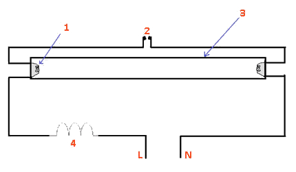 Ici, à partir de l'interface réseau, la ligne de phase est connectée à l'une des deux bornes de l'inductance, et le fil neutre est connecté à une borne de la lampe fluorescente.