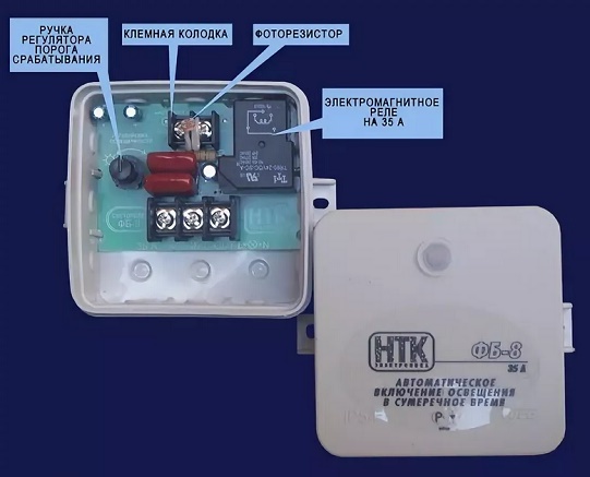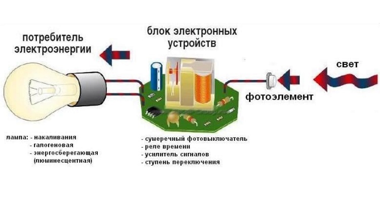 Lorsque le crépuscule s'installe, le photocapteur ferme les contacts et alimente en électricité les lampes montées dans la rue près de la maison. Et avec une augmentation de l'intensité du flux lumineux le matin, il ouvre à nouveau le circuit, éteignant les appareils d'éclairage.