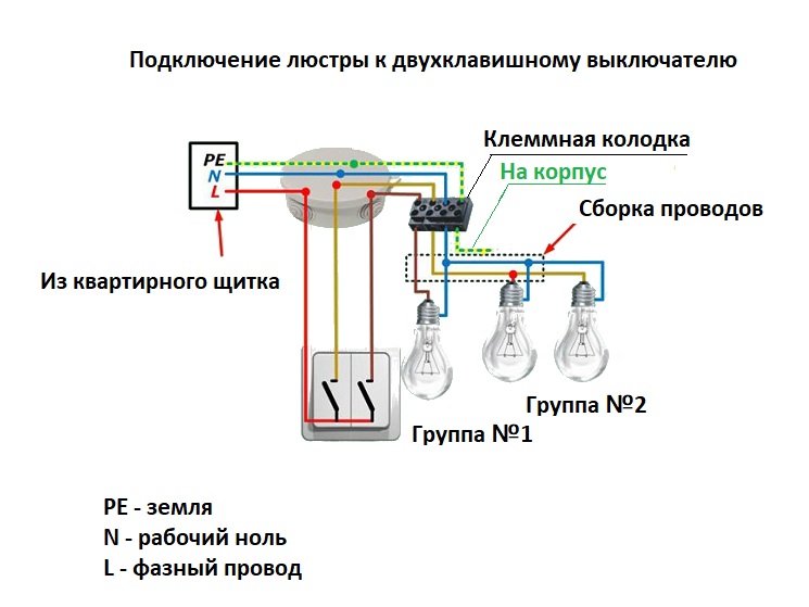 Il convient de noter que le câble d'alimentation reliant le lustre au commutateur ne passe pas toujours par le boîtier de distribution. Les options, lorsque la phase passe immédiatement, en la court-circuitant, prennent maintenant de l'ampleur.