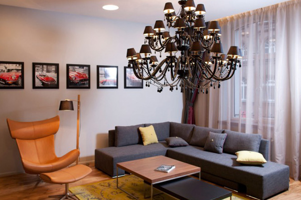 Bicavalion approprié et son bonne connexion simplifie la gestion de la lumière dans la pièce. Certes, il sera toujours nécessaire de créer des groupes optimaux d'ampoules qui composent le lustre.