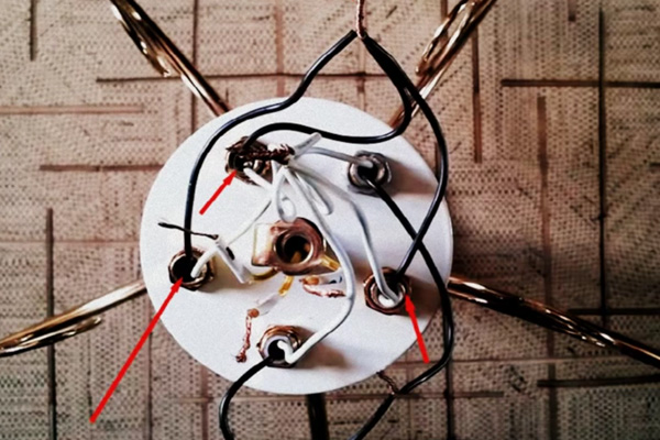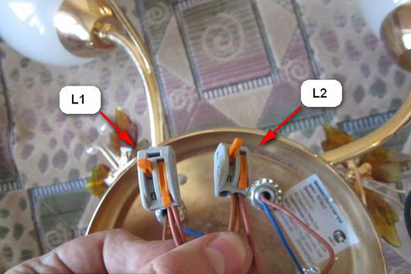 Il est important, avant même de monter le lustre, de voir si le mécanisme de fonctionnement de l'interrupteur à deux touches est correctement connecté.