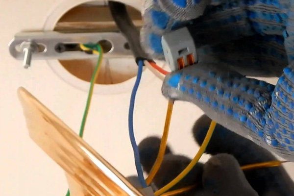 Tous les travaux sont effectués de préférence avec des gants de protection. Même un novice peut utiliser des bouchons WAGO ou PPE. De plus, l'installation devra être effectuée sous le plafond, ce qui n'est pas très pratique.