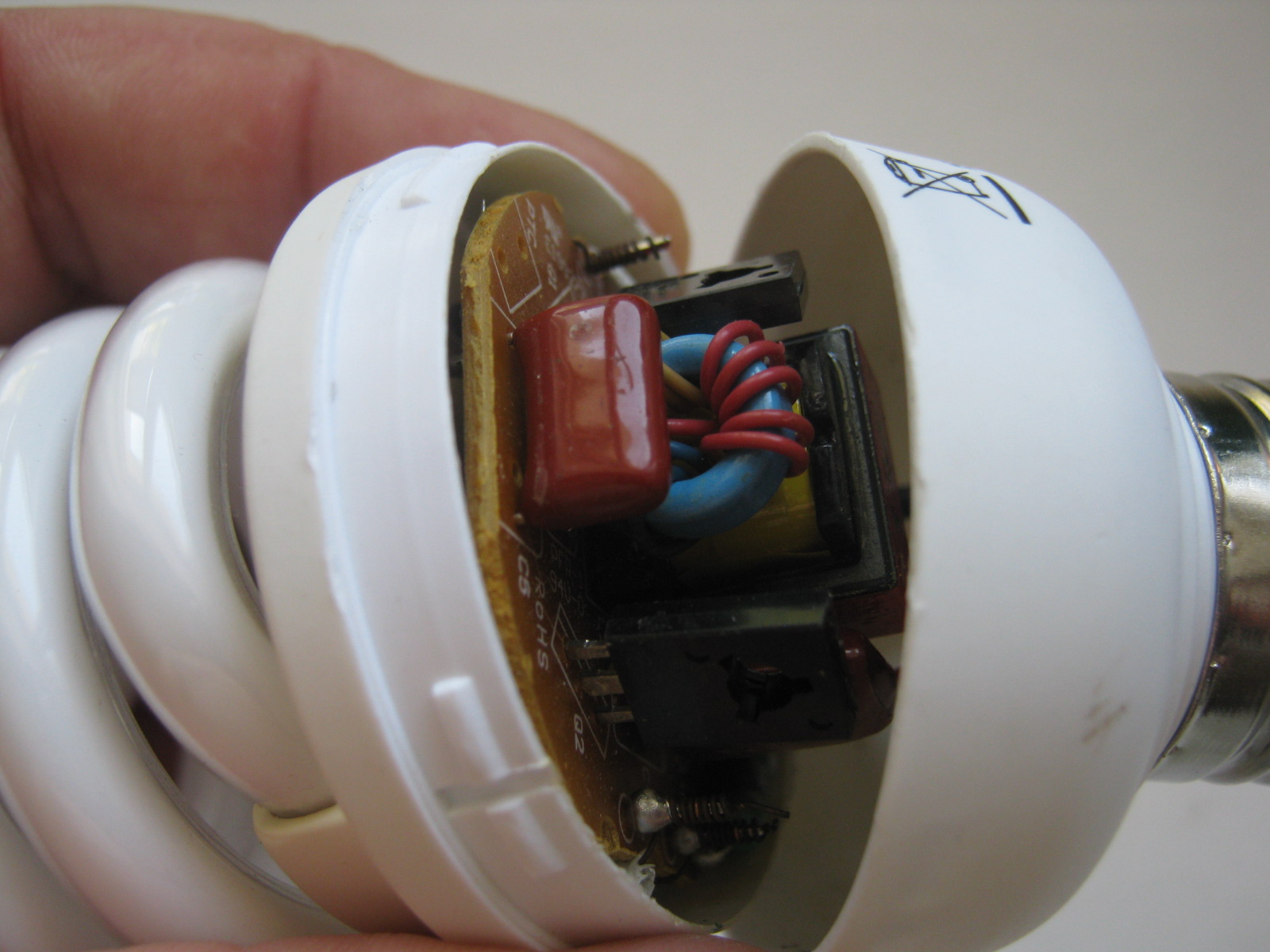 CFL peut être démonté, mais pas à des fins d'utilisation ultérieure pour l'artisanat, mais uniquement si vous avez besoin de réparer le lanceur. Flacon lampe fluorescente il vaut mieux ne pas y toucher du tout, car vous devez vous tenir à l'écart des vapeurs toxiques de mercure.