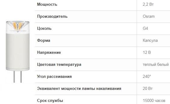 Ampoules LED G4 à 12V: caractéristiques, règles de choix + revue des meilleurs fabricants