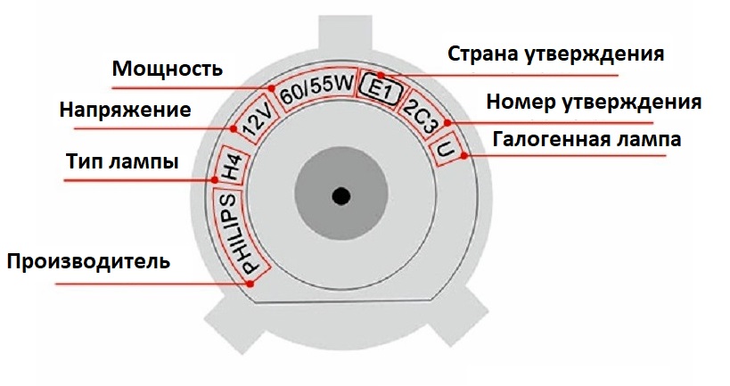 Les lettres sont des chiffres qui indiquent les caractéristiques techniques - tension (Dans) et le pouvoir (VT) Le marquage des lampes d'un type spécial est différent: la puissance n'est pas indiquée, mais il est possible de déterminer le courant, le flux lumineux ou l'intensité lumineuse. Si l'appareil a deux spirales, la puissance de chacune d'elles est indiquée séparément.
