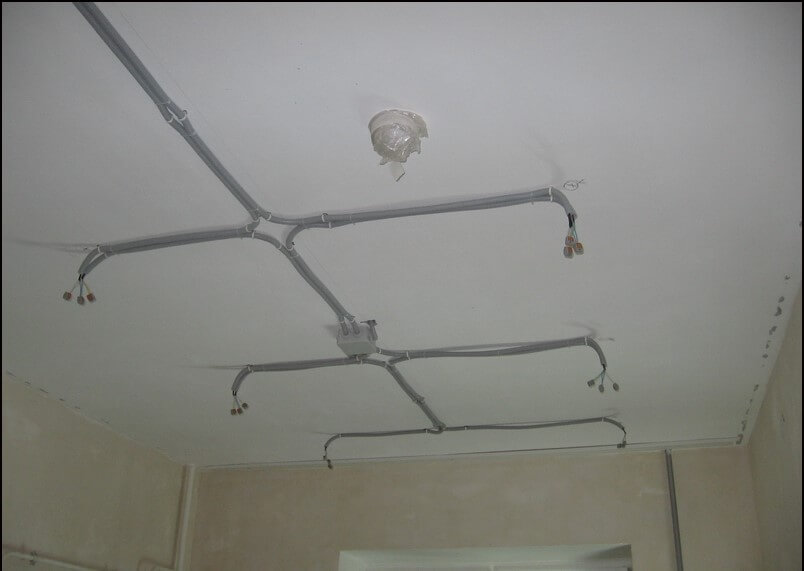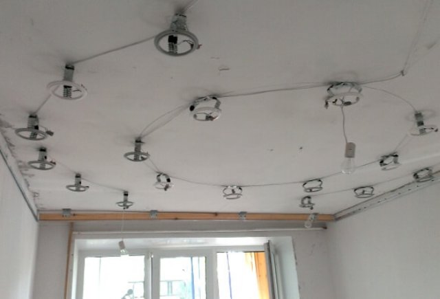 Comme pour l'installation d'autres types de revêtements de plafond, avant de commencer l'installation, il faut prendre soin du câblage des luminaires. Il doit être situé sous le plafond et passer aux endroits où il est prévu de placer des projecteurs.