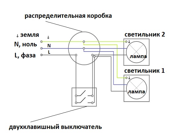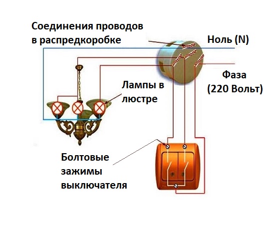 Connexion d'un lustre à un interrupteur double: schémas + règles d'installation