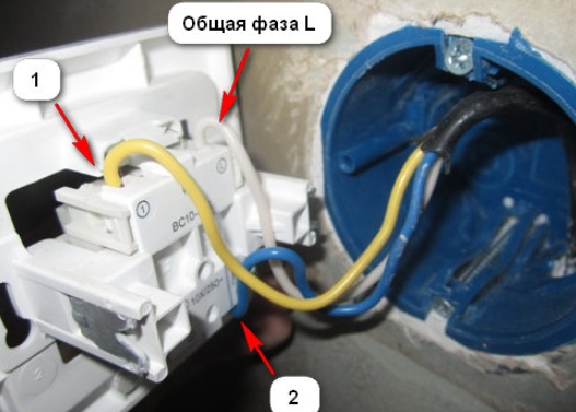 La tâche principale consiste à inspecter la connexion correcte du commutateur. Sur l'une des lignes, l'indicateur de tension en position ouverte doit indiquer la présence du potentiel de phase.