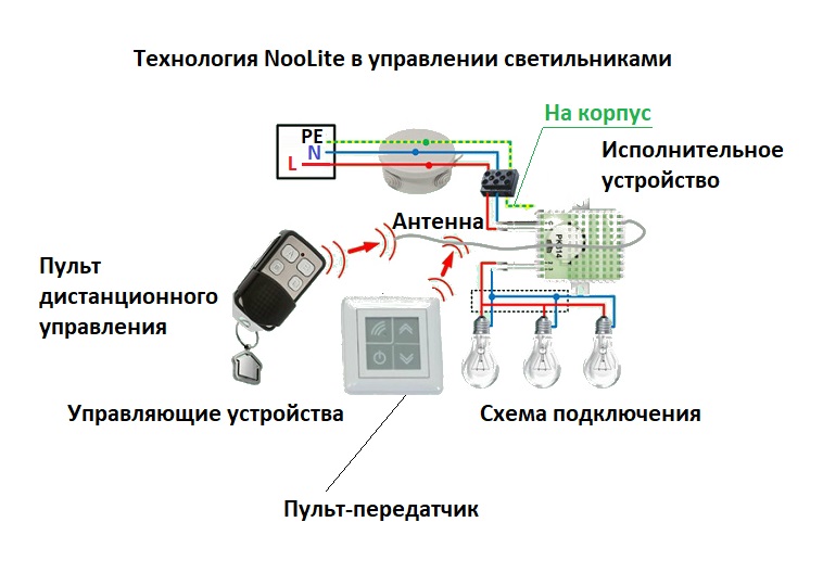 Le schéma montre le principe de connexion d'un lustre avec un transformateur électronique. Dans cette variante de la lampe, il y a une unité de contrôle. Au dos de son boîtier se trouve un plan de connexion. Dans le diagramme: PE - masse, N - zéro, L - phase