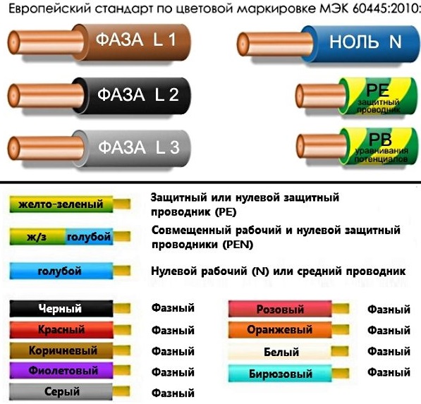 Pour chacun des conducteurs, son but est déterminé, donc la meilleure option est l'utilisation d'un câble avec des fils de différentes couleurs.Cela simplifiera et accélérera considérablement le processus de câblage.
