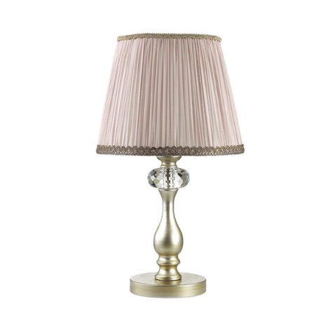 Une caractéristique du produit est un bel abat-jour en tissu avec tresse, fabriqué sous le plissé. Le design est décoré dans des couleurs pastel douces, la base avec un insert en cristal est recouverte d'un saupoudrage d'or.