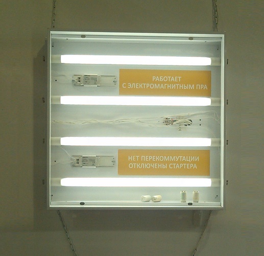 L'éclairage dans les bureaux et les bâtiments publics est le plus souvent constitué de lampes à lampes fluorescentes fluorescentes. Et pour la plupart, ce sont des «carrés» compacts au plafond avec des tubes de mercure sous la base G13.
