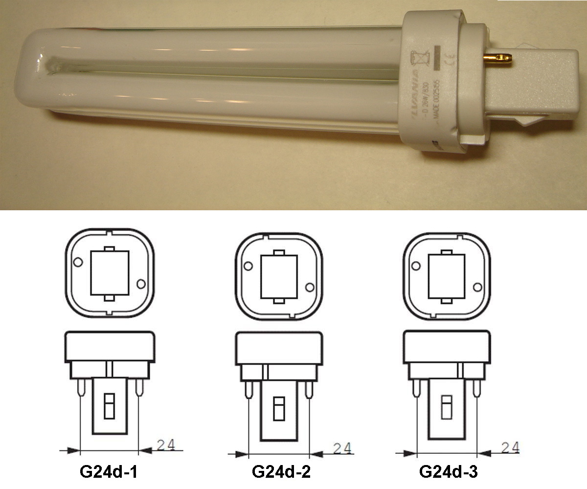 La base «G24» est utilisée pour les lampes fluorescentes compactes, dont le tube est plié quatre fois.