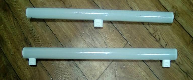 Pour les lampes à tube, le format de connecteur «S14» est souvent utilisé, pour lequel il existe deux variétés. Les modèles "S14s" ont deux broches sur les côtés et "S14d" ont une paire au milieu. La forme de la base est différente de l'habituelle.
