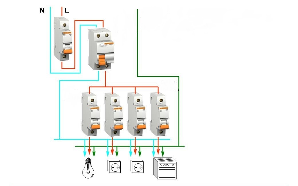 Examinons les schémas les plus courants pour connecter un RCD à un réseau monophasé ensemble, et déterminons également la procédure de connexion.