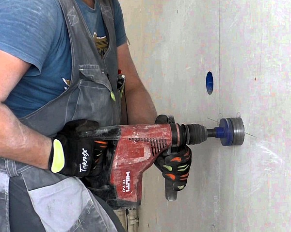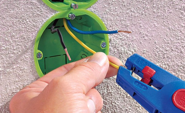 - Percez un trou dans le mur avec une couronne et apportez-y la phase, zéro et le sol (le cas échéant).