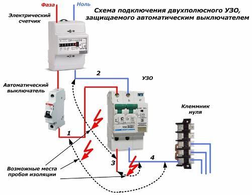 Erreur n ° 2. Le courant de fonctionnement du RCD est sélectionné de la même manière ou avec un léger excès du courant de fonctionnement de la machine dans le circuit. Comme ça disjoncteur capable de protéger le dispositif de protection lui-même contre les surcharges.