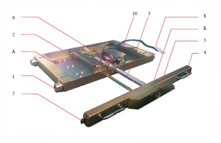 L'interrupteur à vide est fixé directement sur la partie mobile du chariot. Les attaches sont boulonnées. Pendant ce temps, le chariot d'équipement a également une partie fixe, où l'entraînement de la partie mobile est fixe. Le mouvement du module mobile par rapport au module fixe est effectué par la vis de la poignée de commande du chariot.