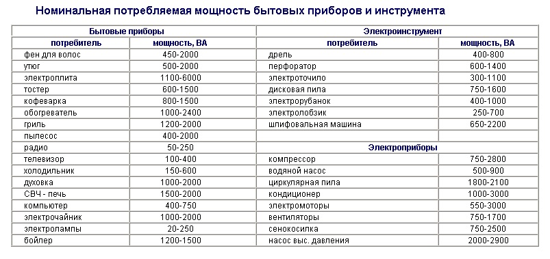 Il convient de noter qu'une grande consommation d'énergie peut être nécessaire, car pendant le fonctionnement, il peut être nécessaire de connecter d'autres appareils électriques qui n'ont pas été initialement pris en compte. Afin de prévoir cette situation, dans les calculs de la consommation totale, un facteur d'augmentation est utilisé.