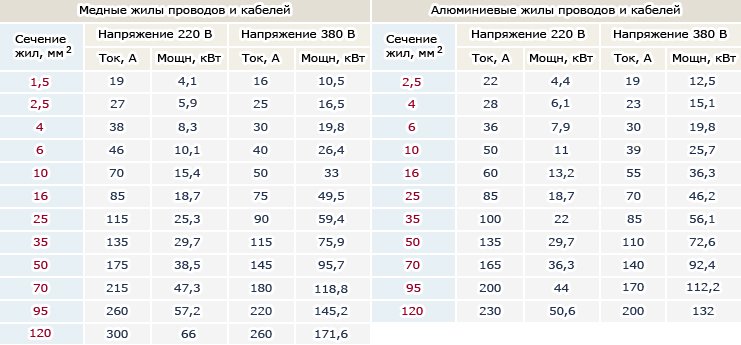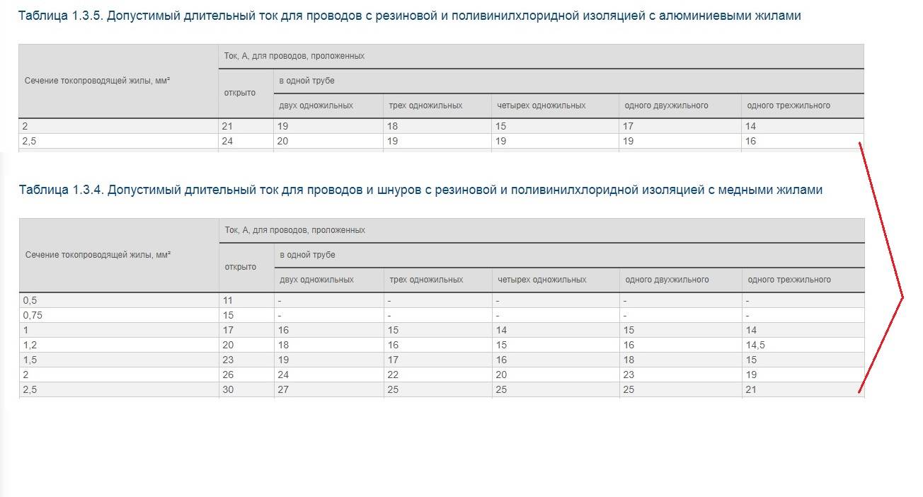 Bonjour, Artem! Les principes de choix d'un disjoncteur que vous définissez professionnellement, mais la puissance nominale de 16 ampères de la machine ne sont pas liés au matériau des noyaux. S'ils sont en aluminium, alors tout va bien. Certes, les conditions de ponte affectent. Si les conducteurs sont en cuivre, un courant admissible de 21 ampères apparaît lors de la pose dans un tuyau - j'ai choisi la colonne du tableau que vous avez utilisée. Une capture d'écran des lignes correspondantes des tables PUE - jointe.