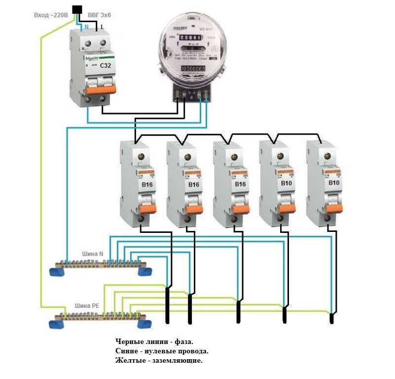 Pour assurer un remplacement sûr du compteur, les PUE nécessitent de couper tous les fils qui conviennent au compteur (une capture d'écran de l'article est jointe). Il existe également des schémas typiques de panneaux d'entrée avec des compteurs - afin de ne pas décrire, j'ai joint une capture d'écran. Soit dit en passant, sur les circuits sans compteur, ils coûtent un disjoncteur d'introduction.