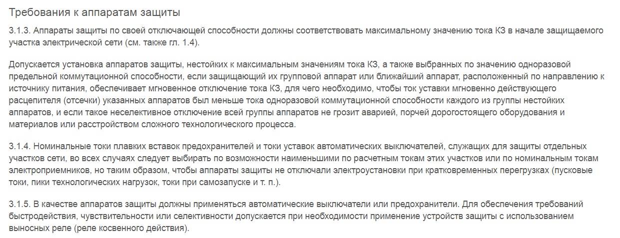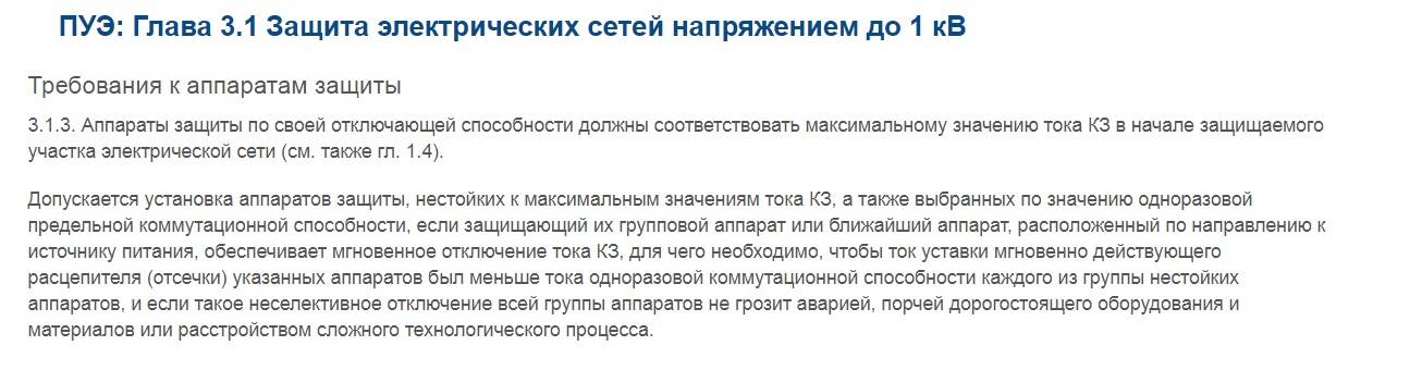 Bonjour, oncle Vasya 🙂 Artyom a exposé les principes du choix correct d'un distributeur automatique - la branche réseau connectée au distributeur automatique est protégée (capture d'écran de l'élément PUE - jointe). Concernant la comptabilité des veines matérielles - vous avez raison. La protection des équipements coûteux est une autre histoire. Ici, vous devez considérer la présence de protections intégrées.